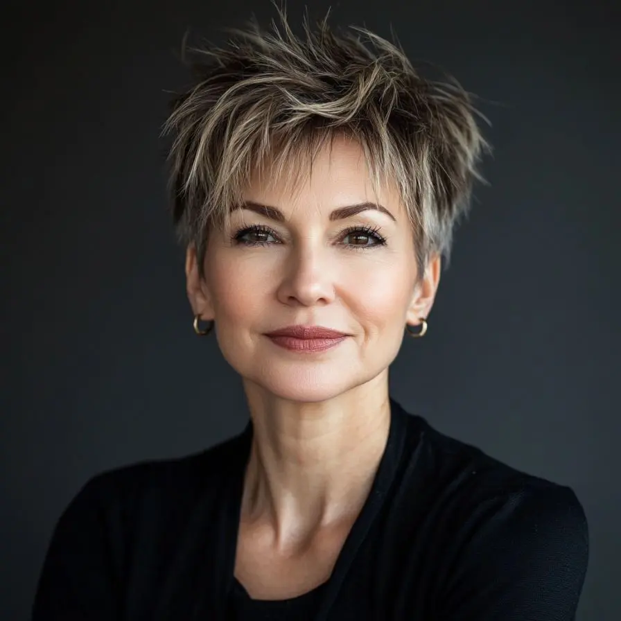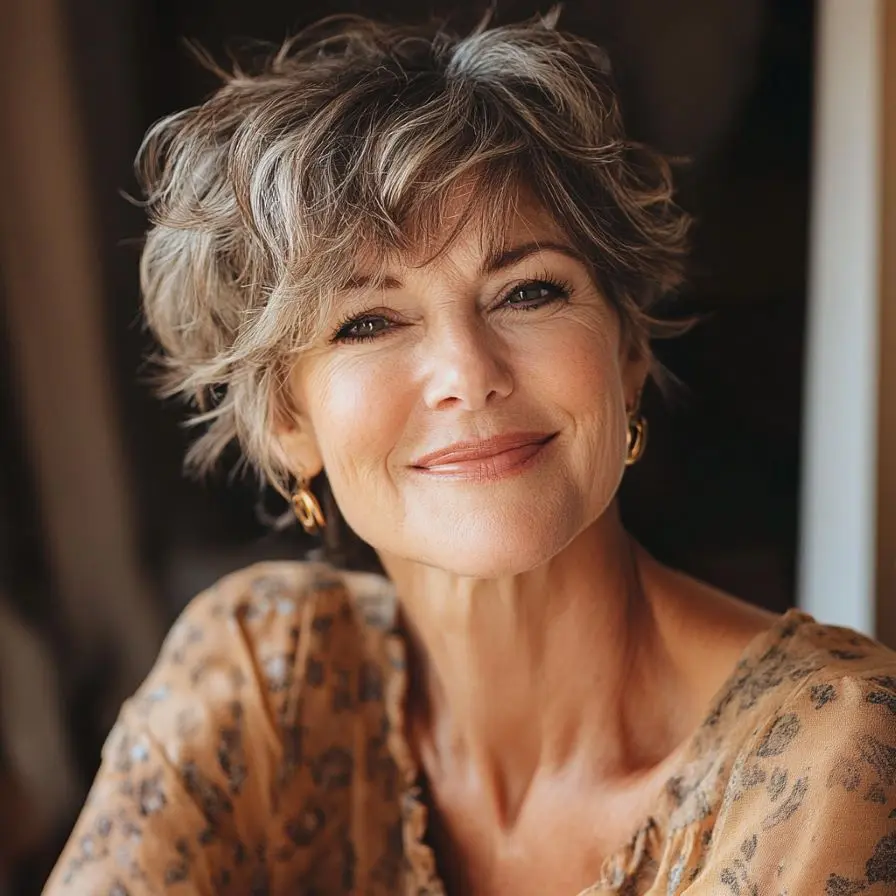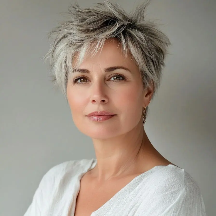The Layered Pixie Cut is a masterclass in structure and dimension. Unlike its smoother counterparts, this variation uses multiple lengths to create a rich, textured finish that’s both modern and flattering. For women over 50, layers can be a game-changer—they add movement, volume, and draw attention away from fine lines by giving the face a lifted, vibrant appearance.