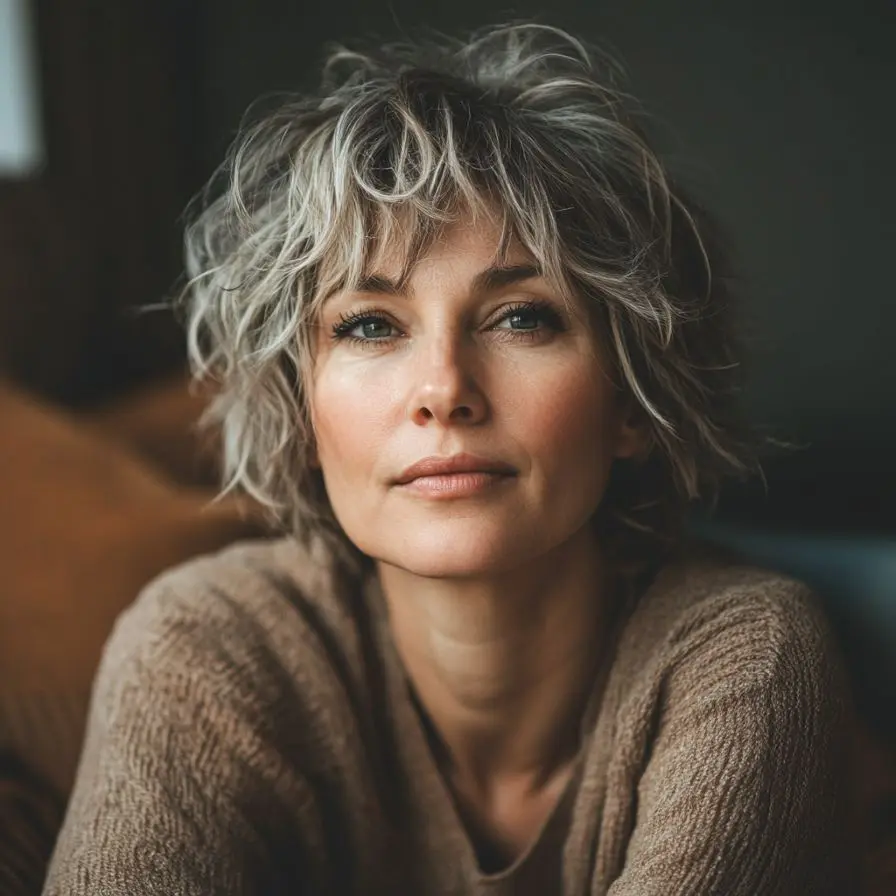 What sets the Shaggy Pixie apart is its versatility. It blends the edginess of a pixie with the movement of a shag, making it ideal for fine hair that needs a volume boost or thick hair that benefits from controlled layering. This style is a favorite in the family of Pixie and Edgy Hairstyles for Women Over 50, thanks to its ability to soften facial features, camouflage thinning areas, and keep things fashion-forward yet age-appropriate.