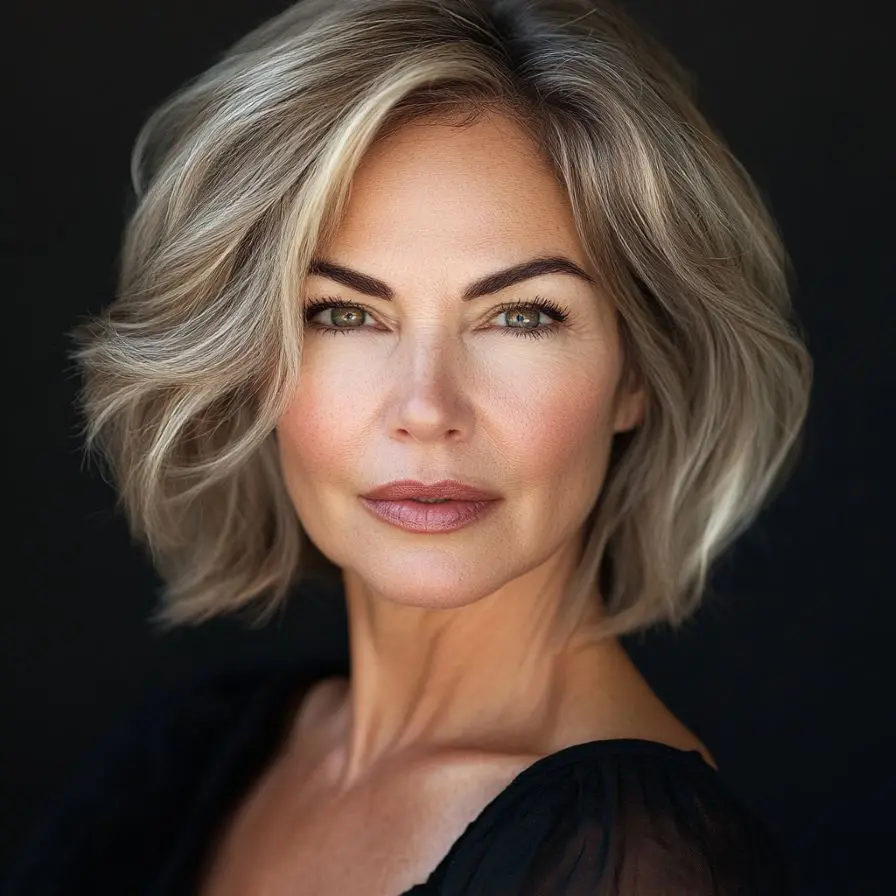 For women searching for hairstyles for thin hair over 50 women, this look offers a perfect blend of sophistication and practicality. It’s particularly effective for fine hair textures, and the clean lines of the bob frame the face beautifully, highlighting your best features.